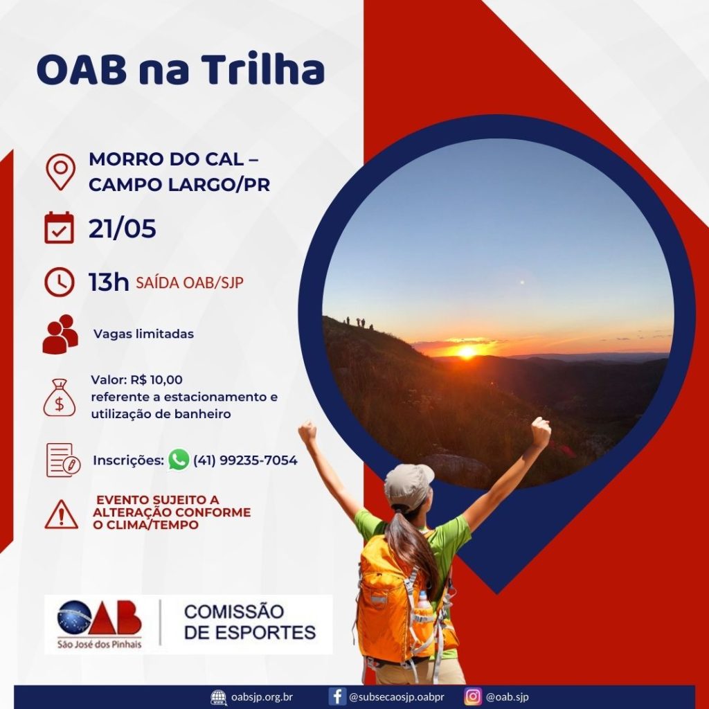 Estão abertas as inscrições para a próxima edição do OAB na trilha. Mais informações no número 41 9 9235-7054.