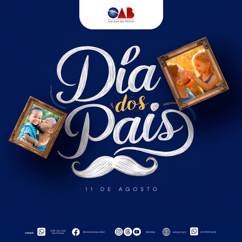 ???? 11 DE AGOSTO – DIA DOS PAIS Pai é aquele que protege com amor, ensina o caminho, compartilha história e aconselha com sabedoria. A OABSJP deseja um Feliz dia dos Pais!!! #DiaDosPais #Gratidão #Família #OABSJP