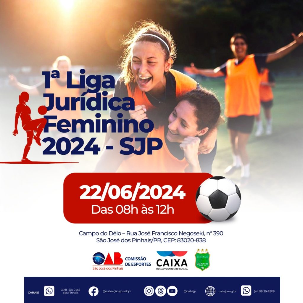 Está chegando a hora de suar a camisa com o Campeonato da Liga Jurídica Feminino! ????♀️⚽ No dia 22 de junho teremos o 1º Torneio ???? Os jogos ocorrerão das 08h as 12h no Campo do Déio – Rua José Francisco Negoseki, 390, São José dos Pinhais. Inscrições e Informações via whatsApp 41 9767-4506 (Presidente […]