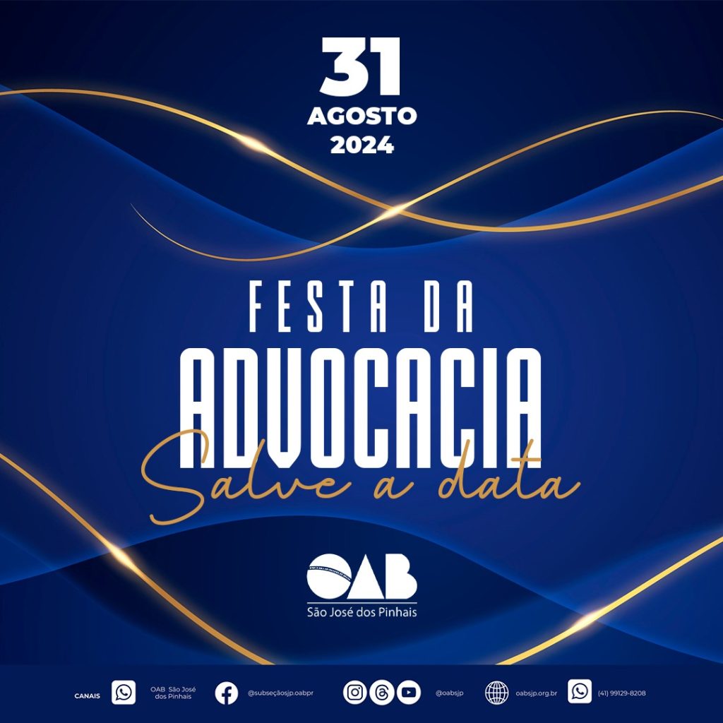 SALVE A DATA ???????? A OAB Subseção de São José dos Pinhais promove – no dia 31 de agosto – grande Festa da Advocacia, evento especialmente preparado para Advogados(as), familiares e amigos em alusão ao Dia da Advocacia. ????Em breve mais informações em nossos canais. Salve a data e reserve em sua agenda porque sua […]