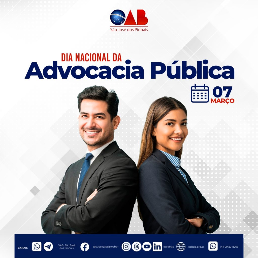 ???? 07 DE MARÇO – DIA NACIONAL DA ADVOCACIA PÚBLICA No dia 07 de março se comemora o dia nacional da advocacia pública, uma data que celebra o trabalho dos profissionais que defendem os interesses do Estado e da sociedade. A advocacia pública é essencial para garantir a legalidade, a transparência e a eficiência da […]