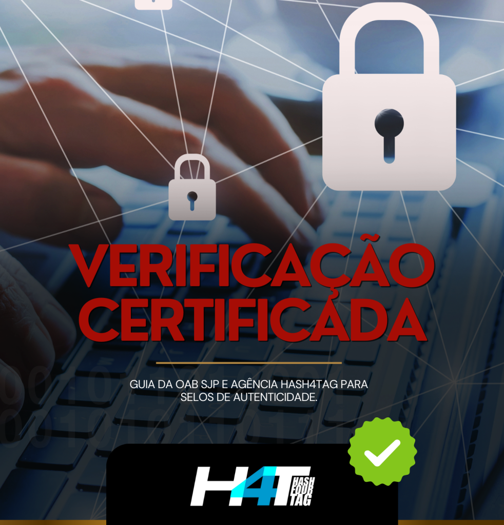 O e-book Verificação Certificada é um guia da OAB SJP e a agência HASH4TAG para selos de autenticidade.