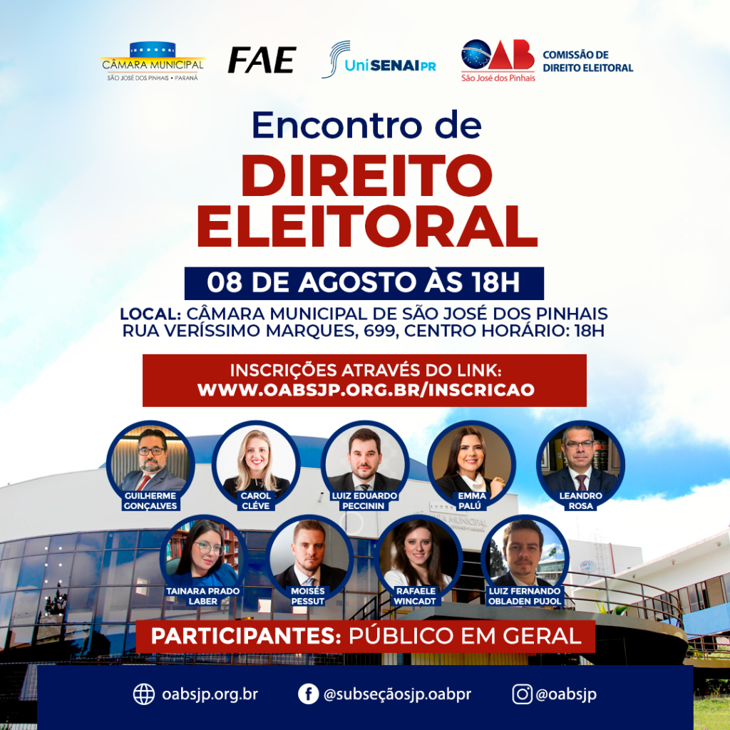 SALVE A DATA ???????? A OAB Subseção de São José dos Pinhais promove – no dia 02 de setembro, a partir das 19h30 – grande Festa da Advocacia, evento especialmente preparado para Advogados(as), familiares e amigos em alusão ao Dia da Advocacia. ????Em breve mais informações em nossos canais. Salve a data e reserve em […]
