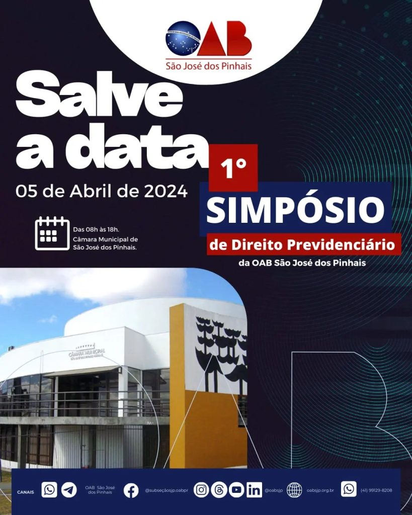 {SALVE A DATA} No dia 05 de abril teremos um evento especial para você advogado(a), o 1° Simpósio de Direito Previdenciário. Em breve mais informações. Fiquem atentos aos nossos canais.