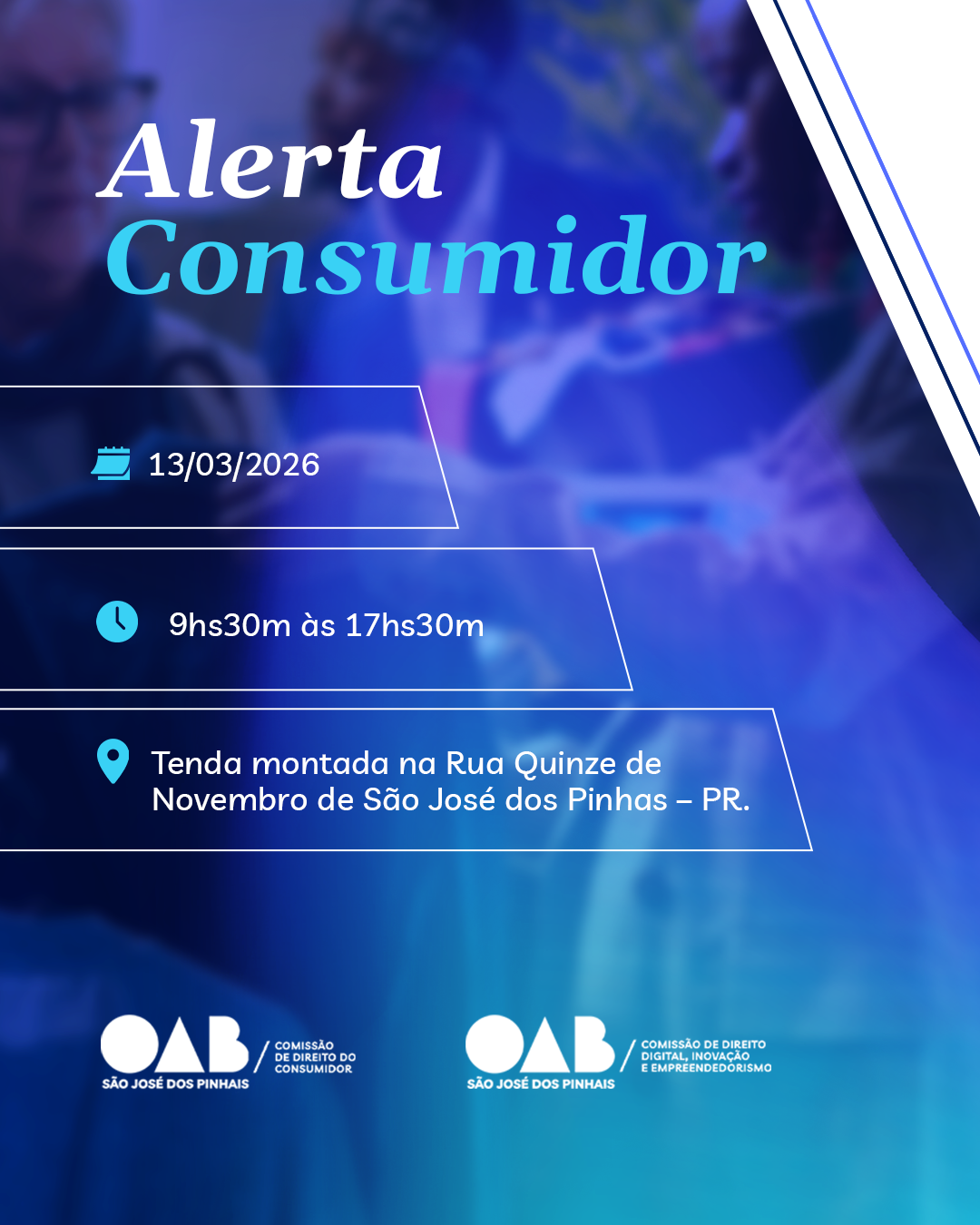 No dia 13 de março, realizaremos a ação Alerta Consumidor, um evento voltado à orientação da comunidade sobre direitos e deveres nas relações de consumo.
