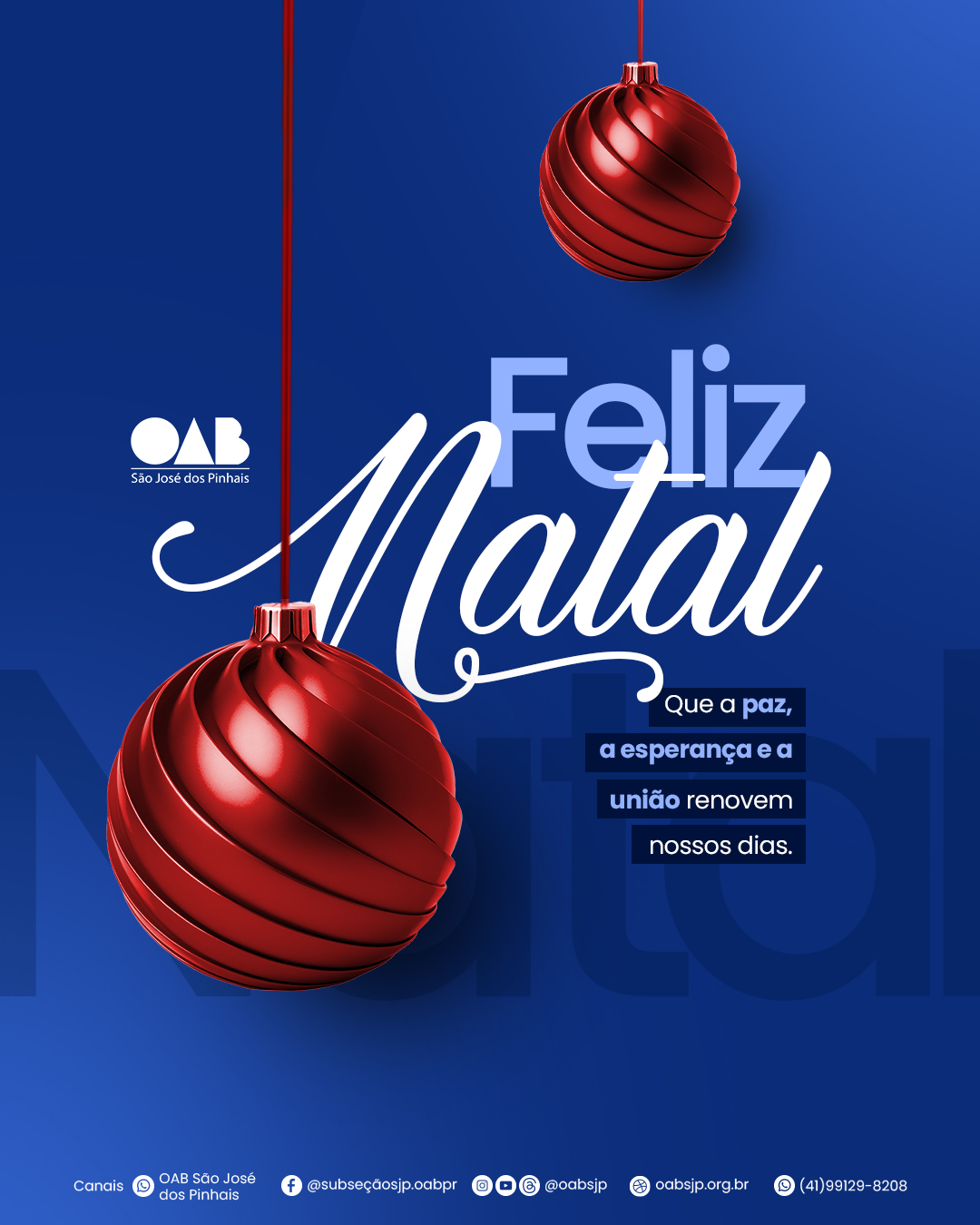 A OAB São José dos Pinhais deseja um Feliz Natal a toda a Advocacia e à comunidade, com votos de serenidade e harmonia para este fim de ano.