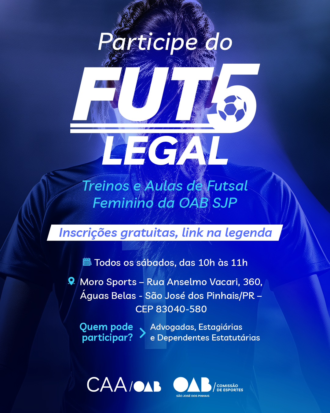 Agora é oficial: todo sábado é dia de entrar em quadra, movimentar o corpo e fortalecer a integração com o FUT5, os treinos e aulas de futsal feminino da OAB SJP.