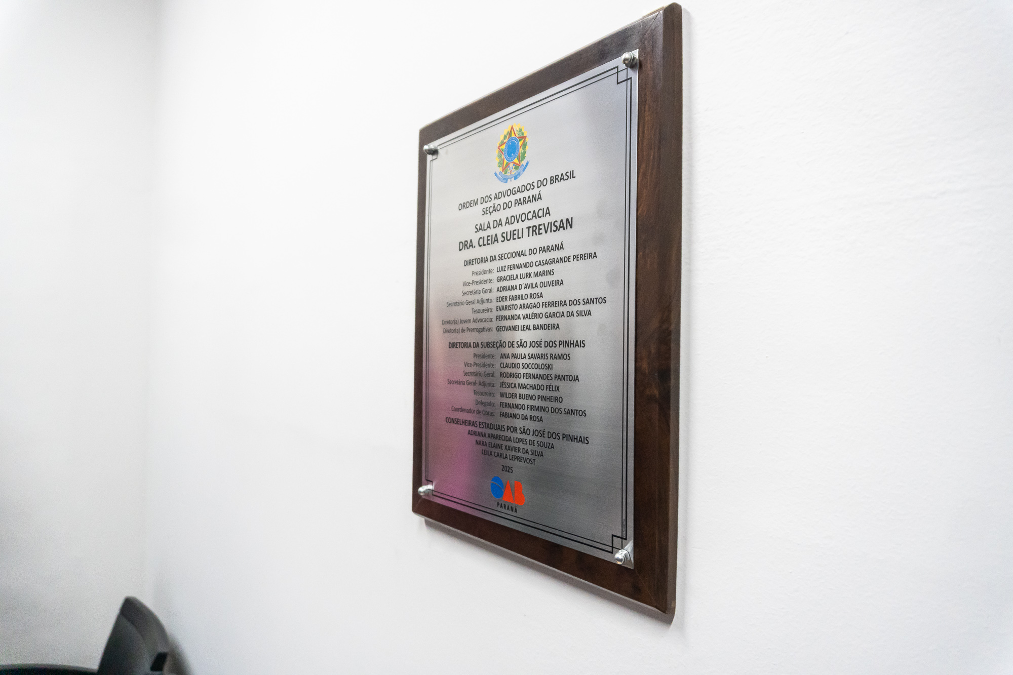 Em um momento de celebração e reconhecimento, a OAB São José dos Pinhais inaugurou, no dia 26 de setembro, a Sala Dra. Cleia Sueli Trevisan, localizada na Vara Descentralizada do Afonso Pena.