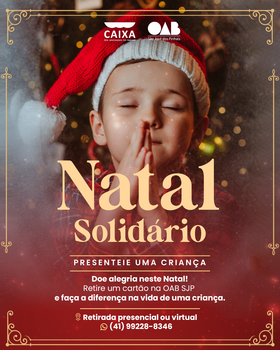 #NatalSolidário #AdoteUmaCriança #OABSJP #Solidariedade #AdvocaciaComPropósito #OABParaná #AmorQueTransforma #Cidadania #ResponsabilidadeSocial