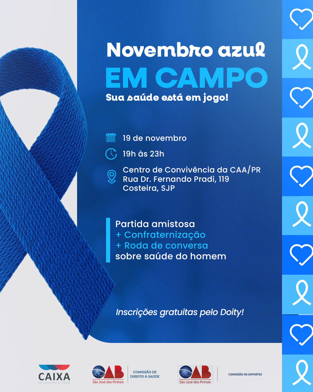 🔗 Inscrições gratuitas: doity.com.br/novembro-azul-em-campo
