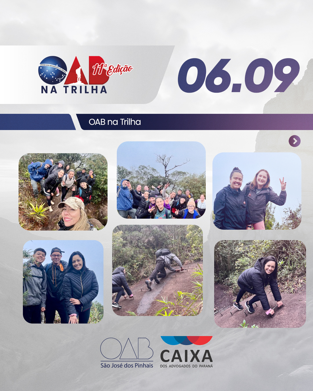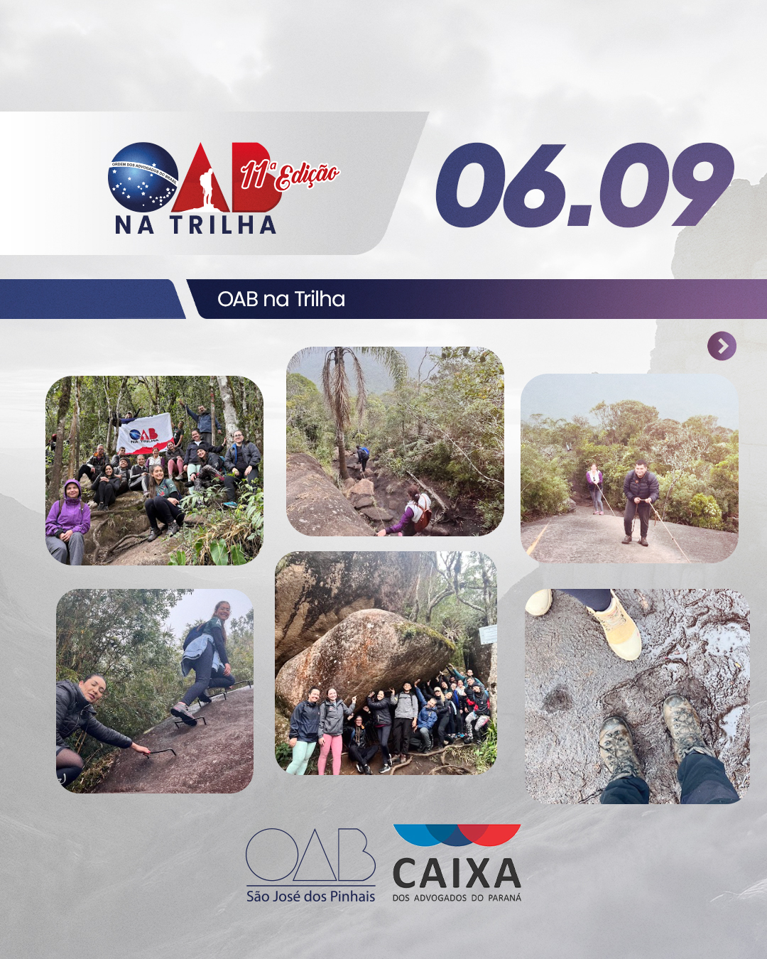 A atividade, promovida pela Comissão de Esportes, contou com o apoio da OABSJP e da CAASJP, reunindo advogados(as) e familiares em uma trilha leve a moderada, repleta de desafios, belas paisagens e, claro, ótimos momentos em grupo.