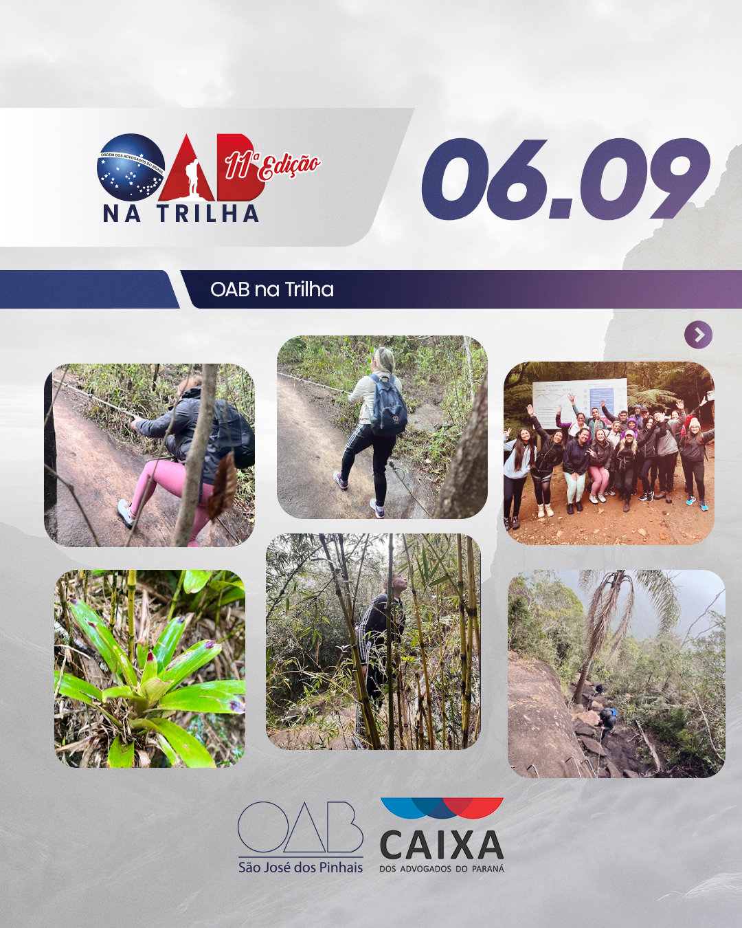 No dia 06 de setembro, realizamos a 11ª edição do projeto “OAB na Trilha”, com destino ao Morro do Canal, em Piraquara/PR. Foi uma manhã de integração e boas risadas em meio à natureza.
