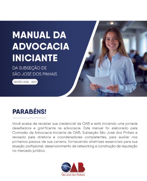 Baixe agora gratuitamente o E-book Manual da Advocacia Iniciante, da OAB São José dos Pinhais.